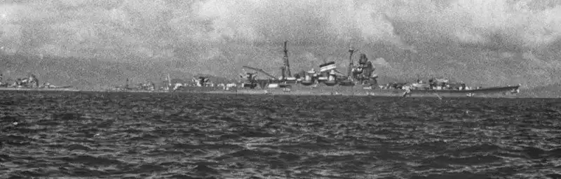 Японский тяжелый крейсер «Тонэ» в море после выхода из Хасирадзимы