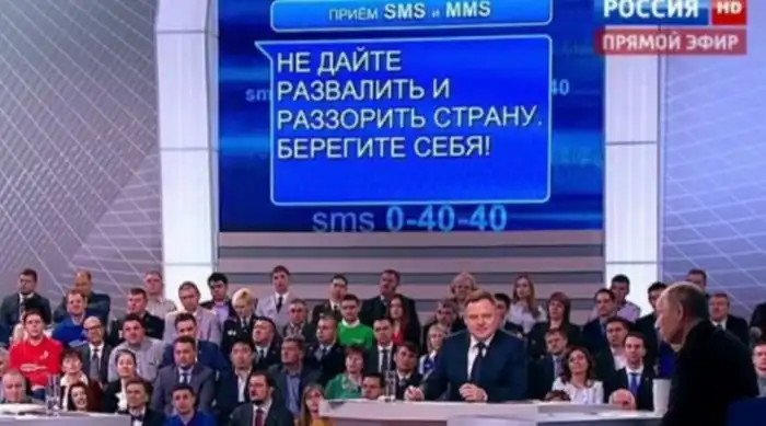В ходе «прямой линии» с президентом России Владимиром Путиным граждане задавали свои вопросы также при помощи SMS и MMS. Некоторые из этих вопросов показывали на экране в студии, и они попадали в прямой эфир. Глава государства замечал некоторые из этих вопросов и прокомментировал их так: «Есть много не хамских, но сердитых вопросов. В большинстве своём разделяю озабоченность этих людей. Мы видим, но не всегда получается сделать то, что хотелось. Но мы будем работать, чтобы проблем было меньше, а счастливых дней побольше».