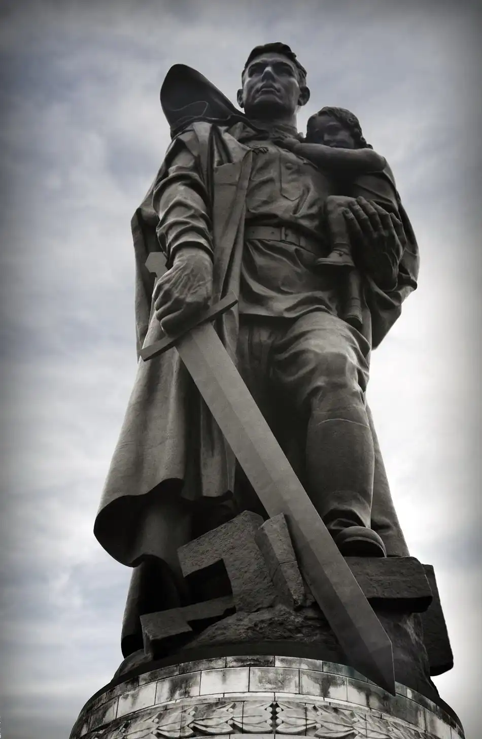 Памятник в берлинском Трептов-парке напоминает об истинном характере, гуманизме и силе духа русского воина-освободителя: он пришел не мстить, но защищать детей, отцы которых принесли столько разрушения и горя его родной стране. Об этом с поэтической силой говорит посвященное воину-освободителю стихотворение поэта Георгия Рублева «Памятник»: