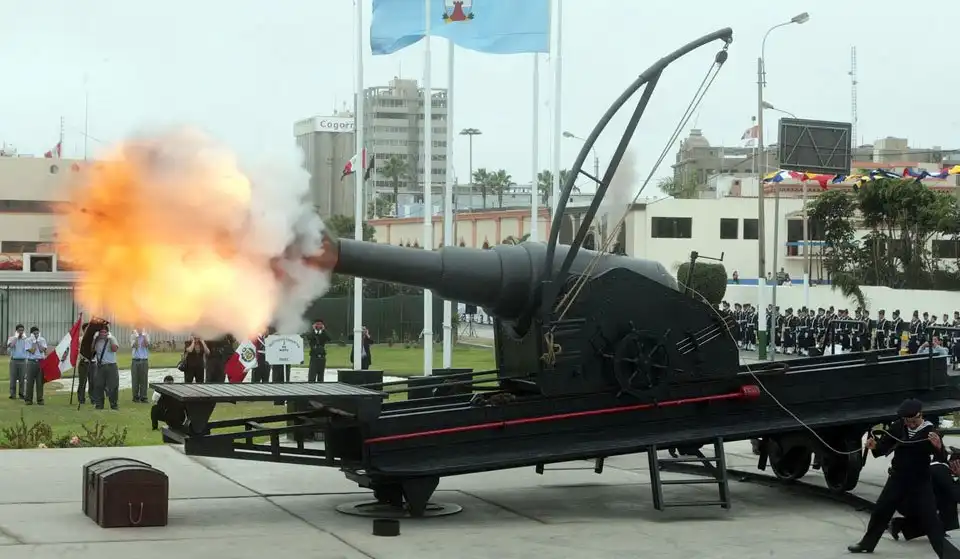 В качестве следующей жертвы был выбран главный перуанский порт Кальяо, однако там, в отличие от беззащитного Вальпараисо, испанцев ждал горячий прием. За годы независимости перуанцы серьезно укрепили этот порт, построив в дополнение к старому испанскому форту Реал Фелипе несколько береговых батарей и вооружив их новыми крупнокалиберными нарезными орудиями, купленными в Великобритании. Осбоенно мощными были батареи "Хунин" и "Ла Мерсед", в каждой из которых за броневыми барбетами толщиной в четыре дюйма стояли по два десятидюймовых орудия Армстронга. Еще пять таких же грозных десятидюймовок стояли вдоль набережной, а всего город и порт защищали 52 пушки различных калибров.