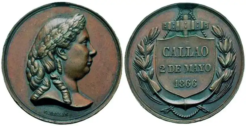 Делая хорошую мину при плохой игре, испанцы встретили вернувшихся моряков эскадры капитана Мендес Нуньеса с триумфом. Газеты на все лады воспевали их подвиг, каждому торжественно вручили специально отчеканенную медаль с профилем королевы, а самого капитана произвели в адмиралы. Кроме того, все участники экспедиции получили за время своего двухлетнего похода двойное жалование, а семьям погибших была назначена повышенная пенсия. Я не знаю, как наградили перуанцы участников боя со своей стороны, но там 2 мая до сих пор отмечается как национальный праздник победы над колонизаторами. В Кальяо в этот день проходит военный парад и производится холостой выстрел из десятидюймовой пушки - одной из тех, которые 150 лет назад защищали город.