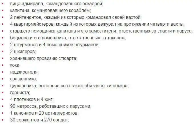 Экипаж «Вазы» состоял из 145 моряков и 300 солдат. По штату он включал: