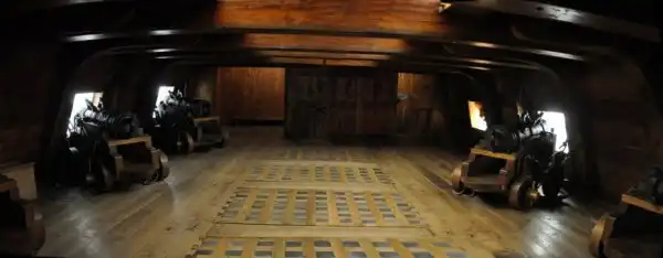 Орудийная палуба с установленными на ней муляжами орудий. На вооружении «Вазы» находилось 48 больших 24-фунтовых, 8 штук 3-фунтовых, 2 штуки 1-фунтовых пушек и 6 мортир. Артиллерийские стволы размещались на деревянных лафетах, которые посредством талей крепились к бортам для предотвращения слишком сильной отдачи при выстреле. Стреляли пушки через порты, прорезанные в толщине борта.
