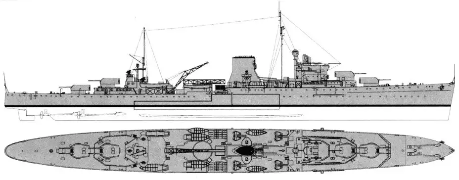 Схема тяжёлого крейсера «Адмирал граф Шпее», 1939 год