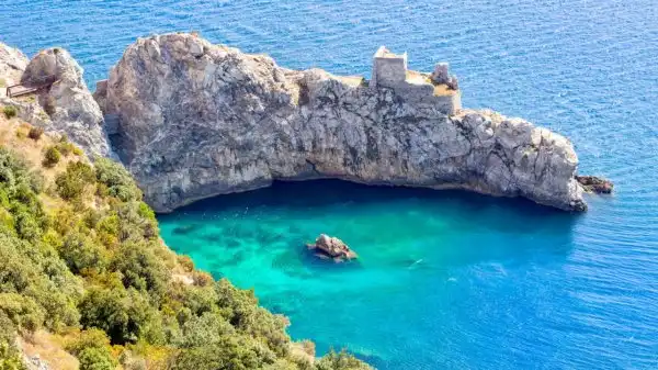 По дороге из Амальфи на западную часть побережья находится одно из главных украшений этих мест - Изумрудный грот. Попасть в него непросто, но то, что вы увидите, будет стоить потраченных сил и денег: удивительное свечение сталактитов и сталагмитов не забудется никогда.