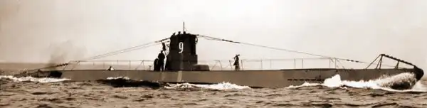 Раннее довоенное фото U 9. На рубке нанесён тактический номер,