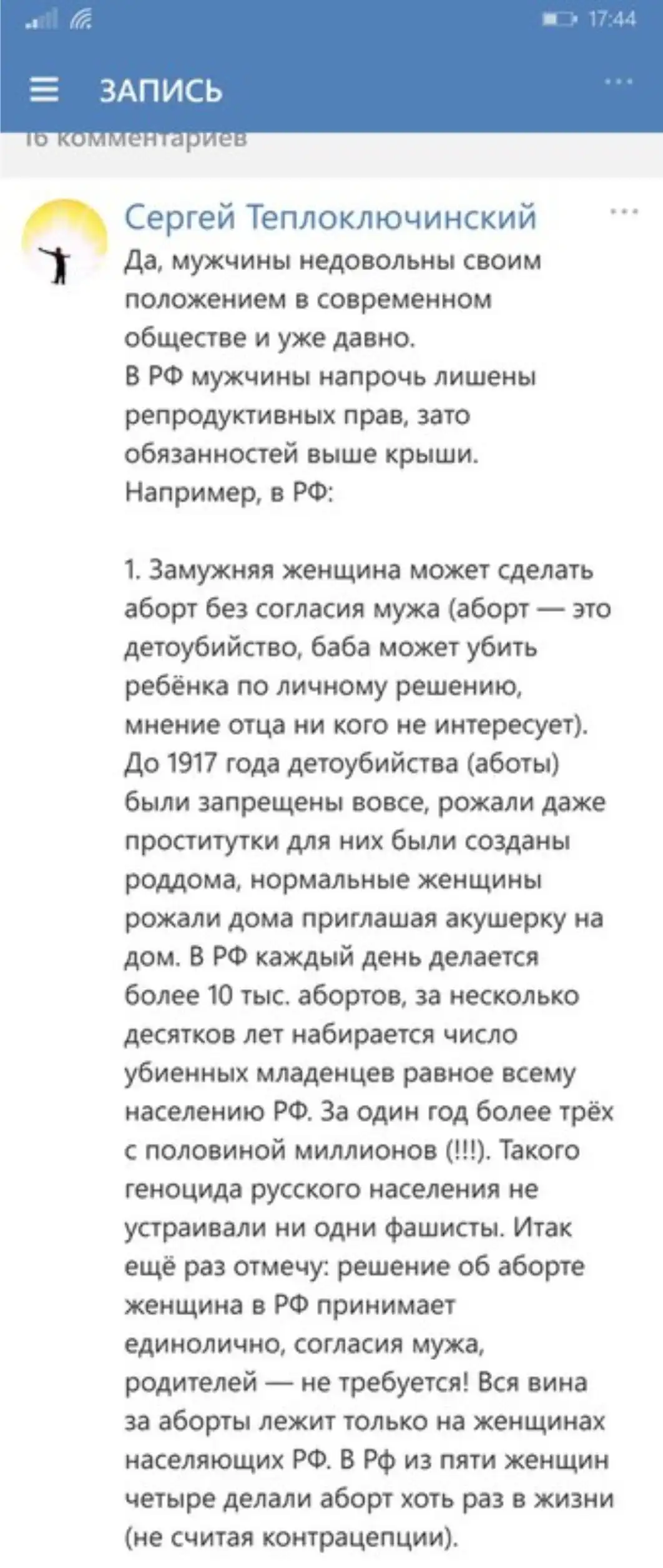 Не прав насчет абортов и разводов.