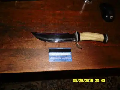 Рукоятку ножа можно менять, но в комплект входит только одна. Материалы – неопрен, пластик, дерево, резина (на любой вкус). Как раз в рукоятке и находится баллон с газом, поэтому очень просто «перезарядить» нож после использования. Общая длина ножа 28,5 см, а лезвия – не более 13 см. Вес ножа с баллоном – около 400 граммов.