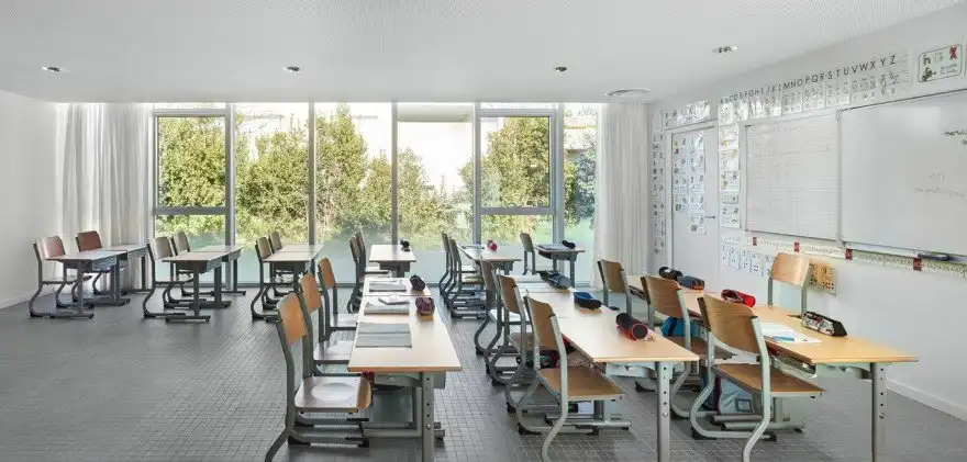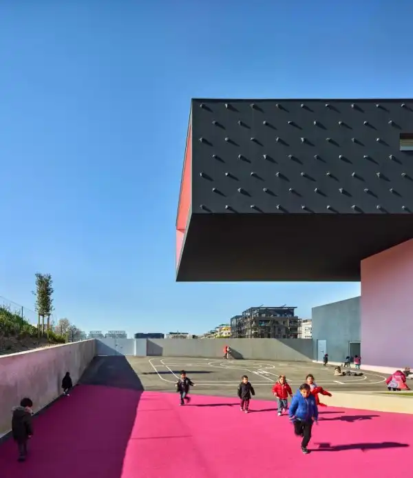Проект школы представила архитектурная фирма Dominique Coulon & associés. Учебное заведение для детей расположено в городе Монпелье во Франции. Площадь проекта составила 3444 квадратных метра, а бюджет — 7 300 000 евро. На первом этаже находятся детский сад и центр дошкольной подготовки, также тут оборудовано пространство для проведения внешкольных мероприятий.