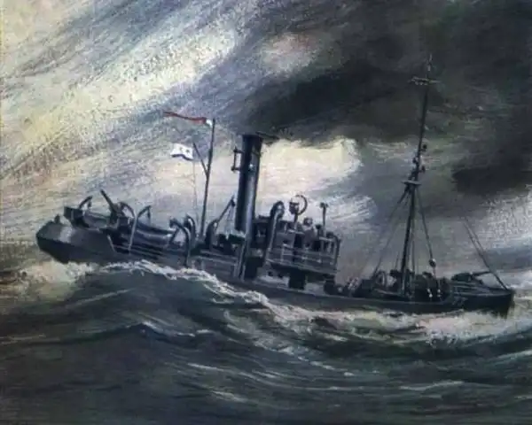 Сторожевой корабль "Пассат" в ночь на 13 июля 1941 года эскортировал два спасательных судна. Переход начался в туманную и дождливую погоду, однако спустя сутки прояснилось, и на пересечение курса советских судов неожиданно вышли три германских эсминца. Обнаружив противника, командир “Пассата”, старший лейтенант В.Л. Окуневич, отдал приказ сопровождаемым судам идти к берегу, чтобы укрыться в бухте Гавриловской, оповестил по радио о вражеских кораблях и ринулся навстречу фашистам. Две сорокапятки, вот и все вооружение «Пассата» против орудий эсминцев. Однако моряки сторожевика вступили в неравный бой, стремясь отвлечь внимание от спасательных судов. Одно судно уже было серьезно повреждено, однако “Пассат” своим огнем и дымовой завесой дал возможность спустить шлюпки и спастись команде (более чем 70 чел.). Второе судно успело скрыться без потерь. Но сам «Пассат» попал под сосредоточенный огонь. Он был разбит и погружался в воду, но кормовая пушка продолжала действовать. Это вел огонь по противнику последний оставшийся в живых матрос. Таков был подвиг этого небольшого корабля.