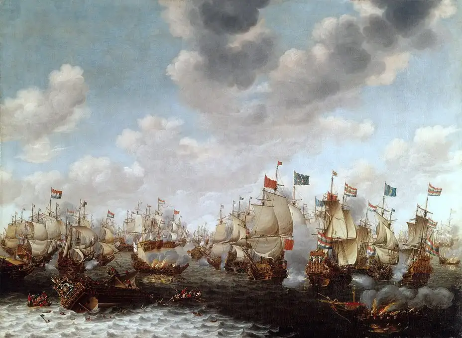 Это было абсолютно логично. И более того, мысль была совершенно не нова. Первое широко известное сражение, проведённое европейским флотом в линии – это бой Васко да Гамы с египтянами и индусами у Малабара в 1502 году. В 1583 году у острова Сан-Мигель испанский адмирал дон Алонсо де Базан устроил «Трафальгар наоборот» англо-французской эскадре, встретив её в линии баталии и разгромив полностью. В 1628 году в бою у острова Аброльос голландский и испано-португальский флоты действовали в линиях. Во время боёв в Ормузском проливе в 1624–1630 годах между испанцами и португальцами, с одной стороны, и англичанами с голландцами – с другой, обе стороны старались держать колонну. Наконец, во время Тридцатилетней войны 1618–1648 гг. голландский адмирал Маартен Тромп делился мыслями о преимуществе боя в линии с британским адмиралом Пеннингтоном. Так почему же в основной своей массе флоты до 1650-х упорно использовали не линию баталии, а «тактику роя»?