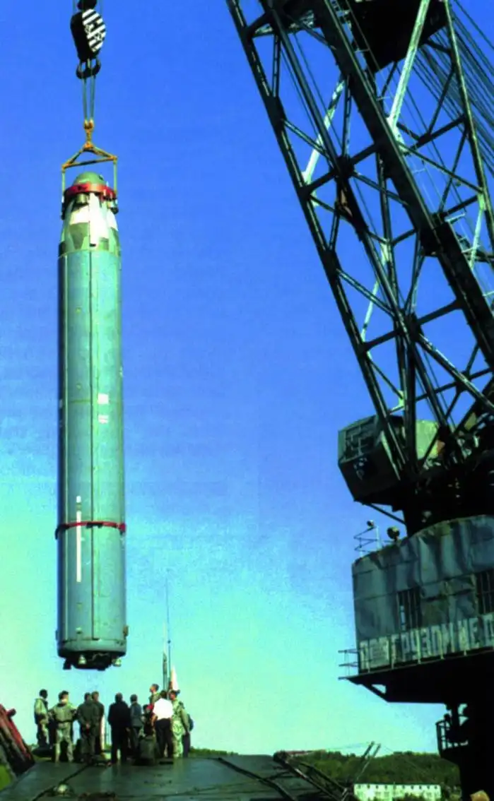 Загрузка ракеты Р-29РМ в пусковую установку носителя