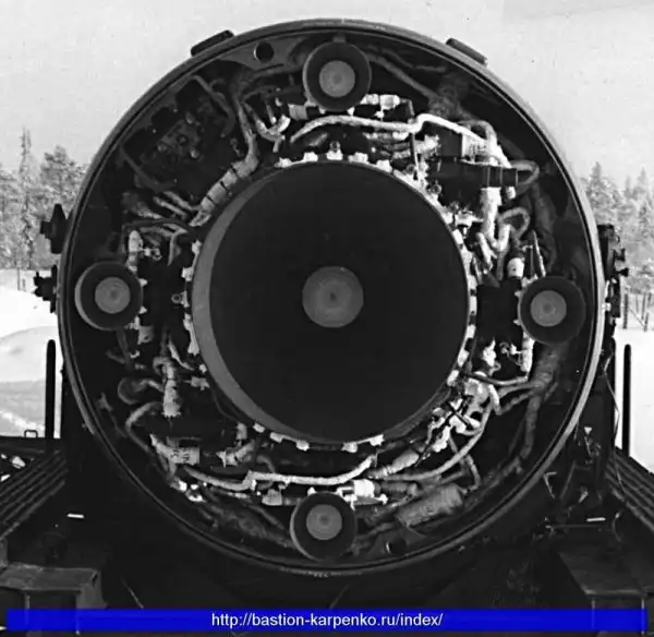 и боевой ступеней; 3 - отсек боевых блоков; 4 - двигатель 3-й