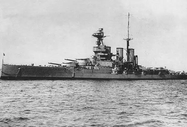Перед самой войной британцы срочно заложили пять линкоров типа R («Ривендж» или «Ройял Соверен»), представлявших собой версию «Куинов» с меньшей скоростью. Уже после начала войны были заложены еще два «экстраординарных» линейных крейсера — «Рипалс» и «Ринаун» (32 тысячи тонн, 31 узел, 6x381 в трех башнях, главный пояс 152 миллиметра). А в 1916 году начали строить линейный крейсер «Худ», который известен уже по событиям Второй мировой войны.