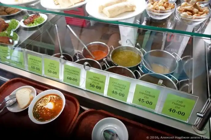 Цены тут просто фантастические. Можно пообедать даже за 50 рублей, если ограничиться супом. От десяти вариантов первых блюд по цене от 40 до 79 рублей просто глаза разбегаются.