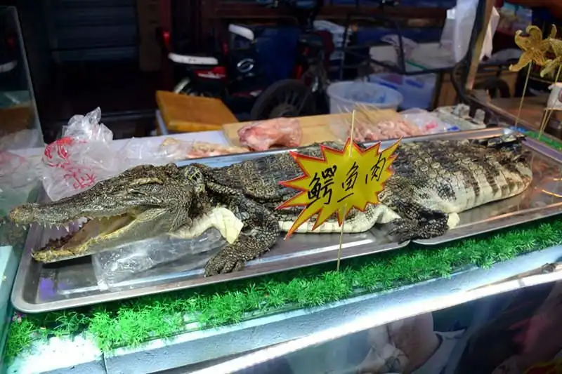 Какими только лакомствами не торгуют азиатские уличные торговцы. В Шэньяне, например, всего за три бакса можно прикупить порцию кебаба из мяса крокодила. Причем хищника вскрывают прямо на глазах голодных покупателей.