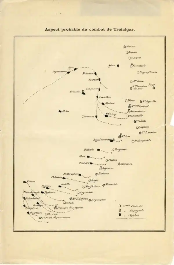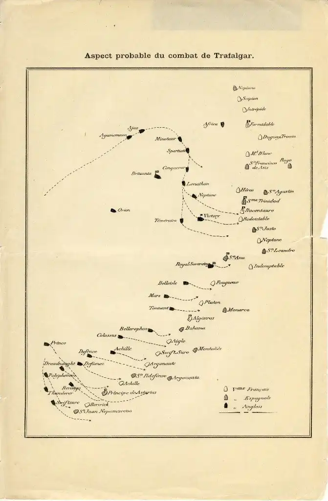 При Трафальгаре франко-испанскому флоту просто не удалось держать линию, где бушприт одного корабля ложился бы на корму другого: