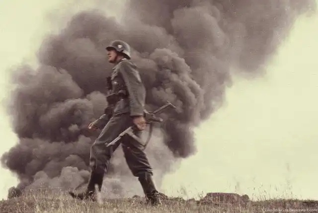 Первый день войны в Перемышле (сегодня — польский город Пшемысль) и первые погибшие захватчики на советской земле (солдаты 101-й легкопехотной дивизии). Город был занят немецкими войсками 22 июня, но на следующее утро был освобожден частями Красной Армии и пограничниками и удерживался до 27 июня. Время съемки: 22.06.1941