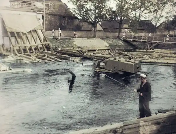 22 июня 1941 года возле моста через реку Сан в районе города Ярослав. В то время по реке Сан проходила граница между оккупированной Германией Польшей и СССР. Время съемки: 22.06.1941