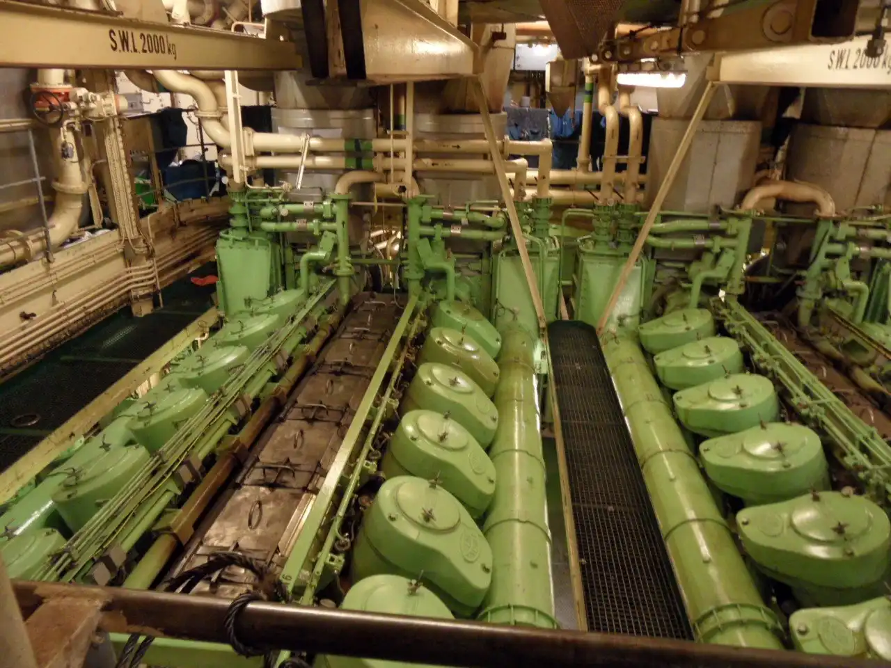 Двигатель девятицилиндровый и высокоэффективный, впервые был установлен на этом судне. На обычных судах семь цилиндров, но на танкере «Hellespont» большие требования к мощности. Коленчатые валы с поршнями напрямую соединены с гребным валом, никаких нейтральных, первых или других передач. У многих судов два и больше винтов, у этого танкера один диаметром 10,5 метров и весом 104 тонны.