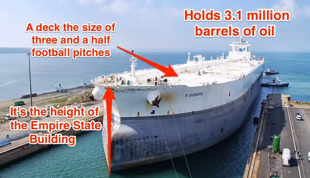 Как оказалось позднее, именно те цифры, о которых мы сказали выше, стали не только плюсом, но и минусом этого гиганта. При полной загрузке, танкер погружался под воду почти на 30 метров. Вы это наверное заметили на фотографиях