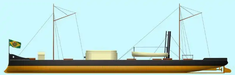 С технической точки зрения это также был довольно интересный корабль, специально разработанный для действий на реках и в прибрежной морской зоне. Длина этого судна с плоскодонным корпусом составляла 39 метров, ширина 8,5 метров, а водоизмещение – 500 тонн. Вдоль ватерлинии борт прикрывал броневой пояс из железных плит шириной 90 сантиметров. Толщина бортовой брони составляла 10,2 см в центре и 7,6 см в оконечностях. Но и сами стенки корпуса, которые были сделаны из на редкость прочного местного дерева пероба, были толщиной 55 см, что, безусловно, представляло собой очень хорошую защиту. Палуба была покрыта противопульной броней толщиной в полдюйма (12,7 мм), на которую был уложен палубный настил из тикового дерева. Подводную часть корпуса обшили листами желтой оцинкованной бронзы – прием очень характерный для тогдашнего судостроения.