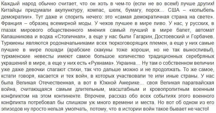 Уже в самом начале войны армия Лопеса потерпела поражение, а флот, как бы отважно парагвайские моряки не сражались, – практически уничтожен в сражении при Риачуэло. После всех этих поражений парагвайцы сражались с мужеством обреченных, так как Бразилия стремилась к полной ликвидации военного потенциала и промышленности их страны и ничего хорошего в этом случае их не ожидало. Противник нес потери, однако силы были неравны.