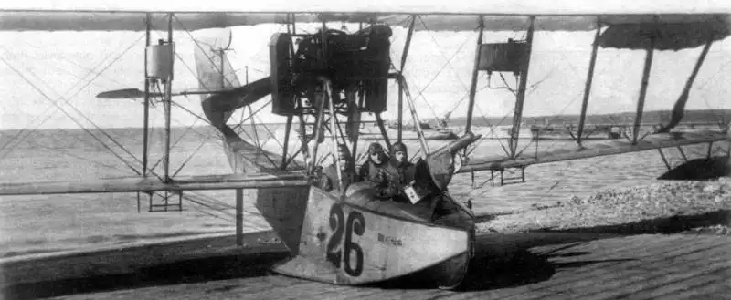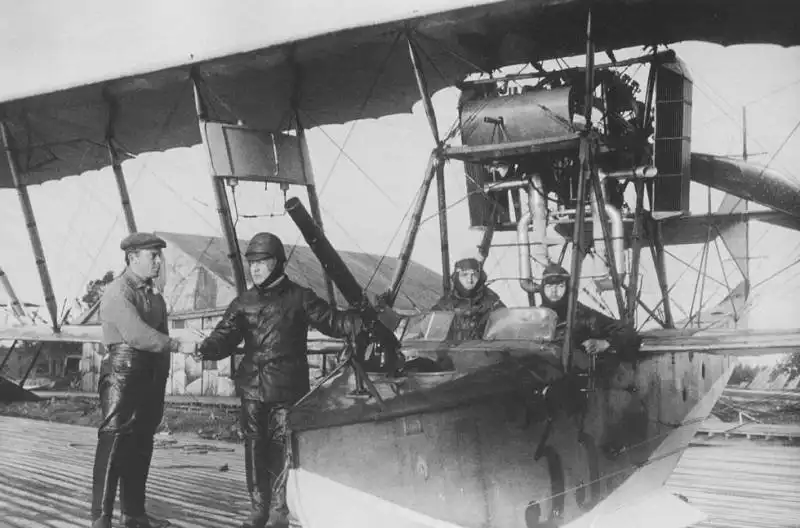 Экипаж М-9 авиации Балтфлота. На носу самолета установлен