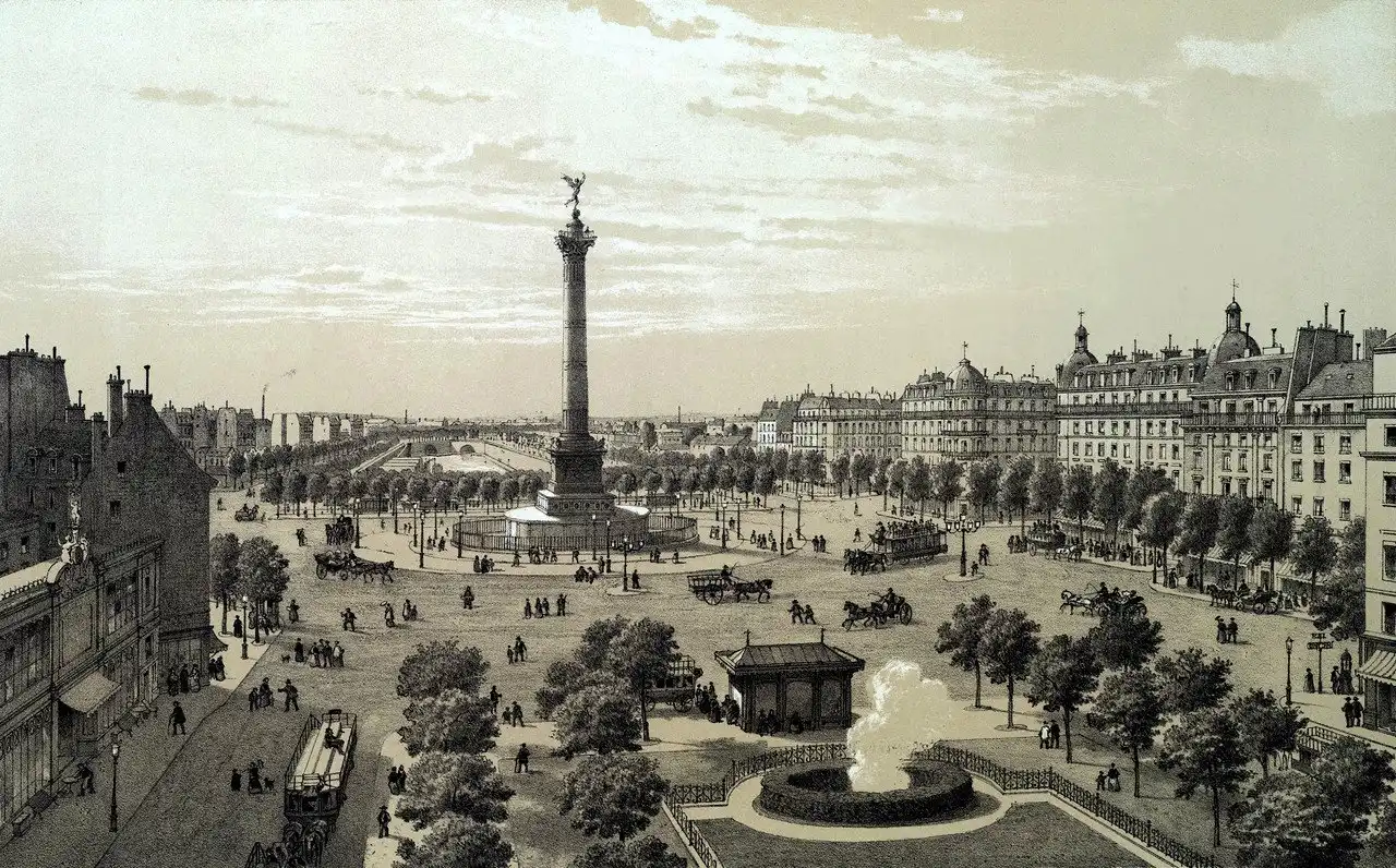 Причем монумент на площади никак не связан с Бастилией. Идея соорудить колонну на новой площади, образовавшейся после разрушения Бастилии, возникала ещё в 1792 году. Бонапарт, тогда еще генерал, предложил построить на этом месте фонтан в виде колоссального слона с башней, и некоторое время здесь действительно стояла деревянная модель этого памятника, увековеченная Виктором Гюго в романе «Отверженные».