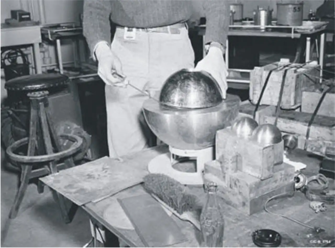 Эксперимент сам по себе был простым, и заключался в следующем: Злотин брал полусферу из бериллия, представлявшую из себя отражатель нейтронов, и медленно опускал ее на ядро, останавливаясь ровно в тот момент, когда полусфера уже почти соприкасалась с плутонием.