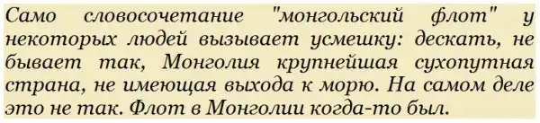 Монгольский флот располагался на севере страны, на озере Хубсугул, протяженность озера с севера на юг 136 км, ширина - 36 км.