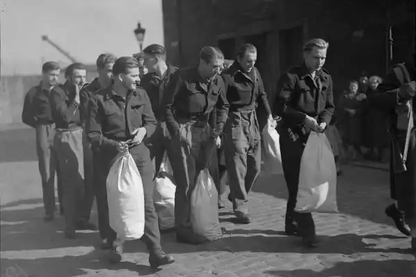 Многие пленные одеты в британскую униформу.