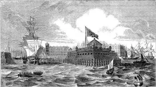27 июня 1715 года случилось непредвиденное событие: в стоявший на внутреннем кроншлотском рейде линейный корабль «Нарва» ударила молния, отчего тот взорвался и затонул. Уже через несколько дней последовало указание Петра во что бы то ни стало поднять корабль, так как к нему быстро наносило песок, и образовавшаяся мель могла испортить фарватер. Петр предложил использовать для подъемных работ прам, мачт-лихтер (специальное судно для подъема мачт и килевания кораблей) и два эверса (мелкие одномачтовые суда). Через месяц в письме к царскому секретарю Макарову один из лучших петровских корабелов Федосей Скляев доносил, что ремонтировать затонувшую «Нарву» бесполезно, и, если выдержат кормовые балки, то корабль попробуют поднять не частями, а полностью. Однако сделать это удалось значительно позднее, в 1723 году, с помощью водолаза, вызванного из Амстердама, и мачт лихтера, прибывшего на о. Котлин в 1722-ом.