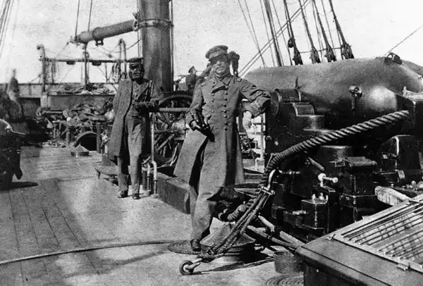План Семса состоял в следующем: обнаружить вражескую эскадру засветло, подождать до восхода луны на якоре и атаковать транспорты с войсками под покровом ночи. К сожалению, впередсмотрящие на салингах «Алабамы» заметили противника слишком поздно, и надежды на то, что северяне все-таки прозевают их приближение, не осталось. Недалеко от города были зафиксированы три корабля, один из которых был ошибочно классифицирован как парусный фрегат (на самом деле это был паровой «Бруклин» под флагом коммодора Белла). Два других были правильно определены как пароходы. Один из них начал разводить пары и пошел навстречу рейдеру. Семс приказал также поднимать пары и опустить винт. Он рассчитывал отвести преследователя подальше в море, где звуки пушечной пальбы не были бы слышны на остальных кораблях эскадры, не показывающих признаков активности. «Алабама» шла под марселями, подрабатывая машиной. К большой скорости не стремились – преследователь не отличался быстроходностью. Семс просто хотел затянуть паузу перед неизбежным боем, чтобы принять его в наиболее благоприятных для себя условиях. По пенному следу рейдера отчаянно пыхтел «Гаттерас», входивший в блокадную эскадру Мексиканского залива. Это был железный колесный пароход, приспособленный для военных целей. Его водоизмещение достигало 1100 тонн, паровая машина мощностью 500 л.с. имела один котел. Вооружен был «Гаттерас» четырьмя короткоствольными 32-фунтовыми пушками, двумя нарезными 30-фунтовыми и одной нарезной 20-фунтовой. Разные источники указывают на наличие на борту парохода двух 12-фунтовых гаубиц. При сопоставимом с «Алабамой» количестве стволов северянин явно уступал своей сопернице в их качестве. Ее 32-фунтовки были более дальнобойными, а нарезное орудие системы Блекли и бомбическая пушка превосходили все, что было на борту «Гаттераса», на порядок. Технология изготовления кораблей из железа в то время еще не была отработана, и впоследствии это сказалось во время боя.