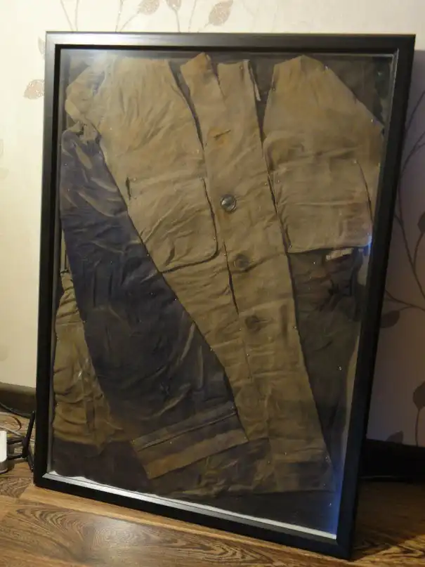 Пилот был одет в кожаную куртку с меховой подкладкой, чёрные суконные брюки и морской китель с нарукавными нашивками старшего лейтенанта военно-воздушных сил Краснознаменного Балтийского флота.