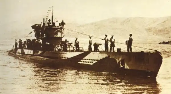 U 188 таранит рыбацкую лодку. Снимок сделан 11 февраля