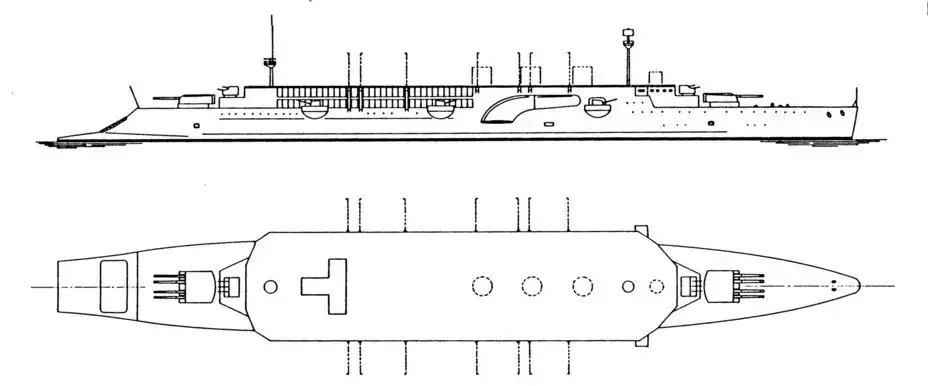 водоизмещением в 12 200 т и с двумя трёхорудийными 152-мм