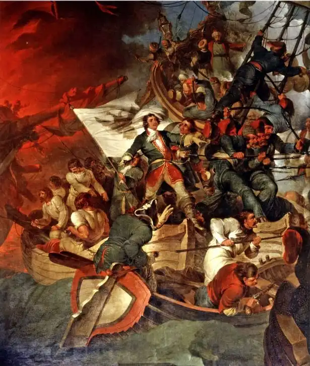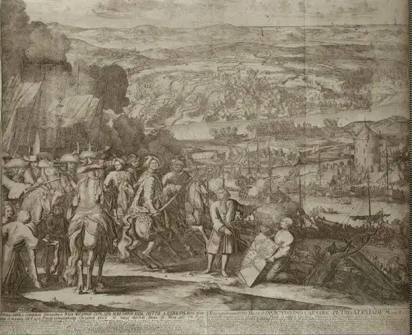 Взятие Азова. В центре, на конях, Царь Пётр I и