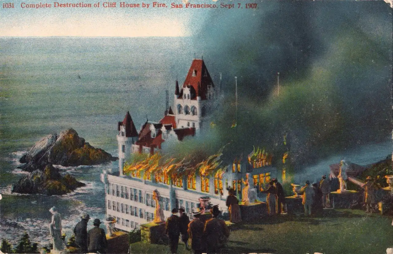 В 1881 году Клифф-Хаус купил миллионер Адольф Сутро, который позже стал мэром Сан-Франциско. Сутро хотел превратить ресторан в полноценное место семейного отдыха. С этой целью он отремонтировал здание, нанял новый персонал и начал строительство железной дороги, чтобы привлечь посетителей к этому удаленному побережью, когда на Рождество в 1894 году вспыхнул пожар. Пожар уничтожил все каркасное деревянное здание.