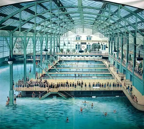 Бани имели более 500 частных гардеробных комнат с удобствами для 20 000 купальщиков. Тут были устроены горки, турники, трамплины и вышки. В комплексе также находился музей с обширной коллекцией чучел животных и 2700-местным амфитеатром.