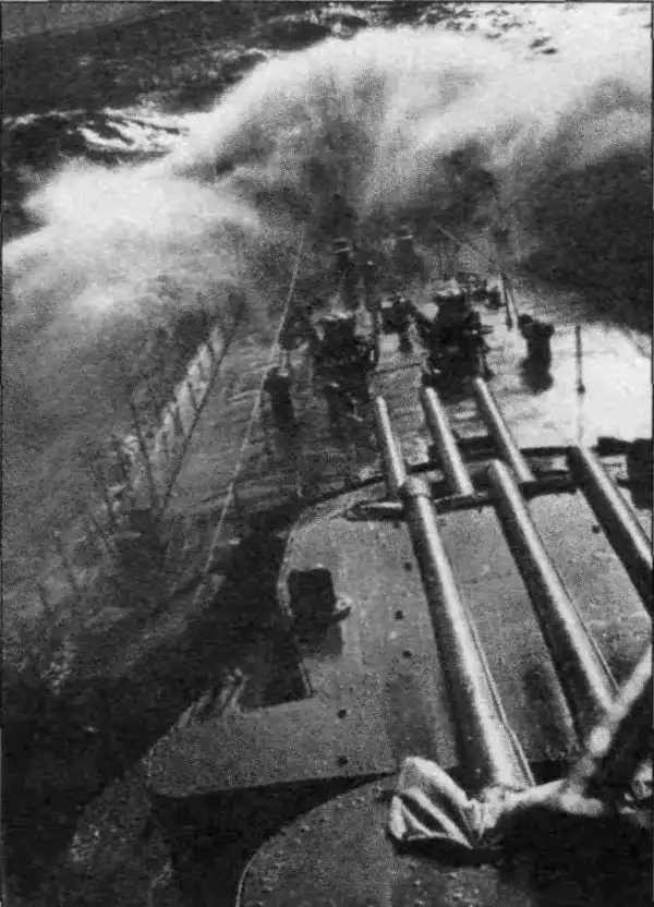 Как бы ни мотала качка корабль, все равно обязательно случается момент, когда судно находится на ровном киле. Поэтому для стрельбы использовали специальные гироскопы-кренометры, которые улавливали момент «ровного киля» и только тогда замыкали цепи стрельбы. Стрельба происходила так – главный артиллерист посредством автомата стрельбы задавал правильные углы горизонтальной и вертикальной наводки, как только орудия были заряжены и наведены на цель, комендоры в башнях нажимали кнопку готовности к стрельбе, отчего у главарта на пульте загоралась соответствующая лампочка. Главный артиллерист корабля, по мере того как назначенные им орудия показали свою готовность, нажимал кнопку «залп!», и… ничего не происходило. Гироскоп-кренометр «дожидался», когда корабль окажется на ровном киле, и только после этого следовал залп.