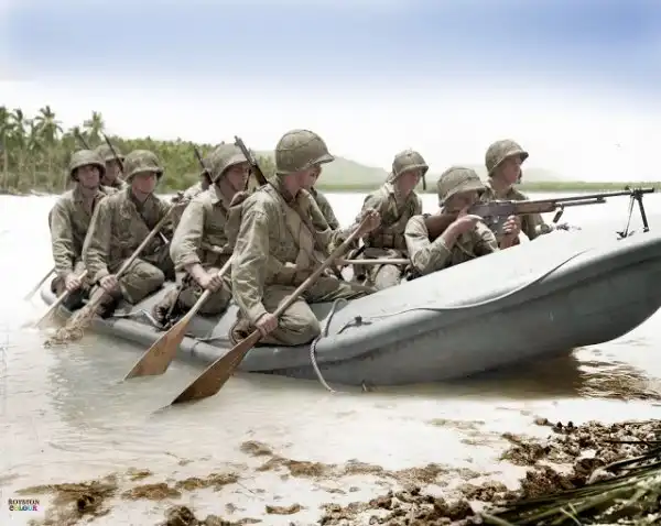 В шестом часу утра 17 августа 1942 года на атолл Макин в группе островов Гилберта высадились две роты 2-го батальона рейнджеров морской пехоты США. Рейд на Макин был одним из первых американских наступательных действий во Второй мировой войне. В нём принимали участие 211 морских пехотинцев, а среди офицеров, возглавлявших рейд, был и капитан Джеймс Рузвельт, сын президента США. К атоллу с Гавайских островов рейнджеров доставили подводные лодки «Аргонавт» и «Наутилус», а непосредственно на пляж, на который осуществлялась высадка, они попали на надувных лодках LCRL. Целями атаки были уничтожение строившейся на захваченном японцами в декабре 1941 года атолле базы гидросамолётов, а также добыча разведывательной информации.