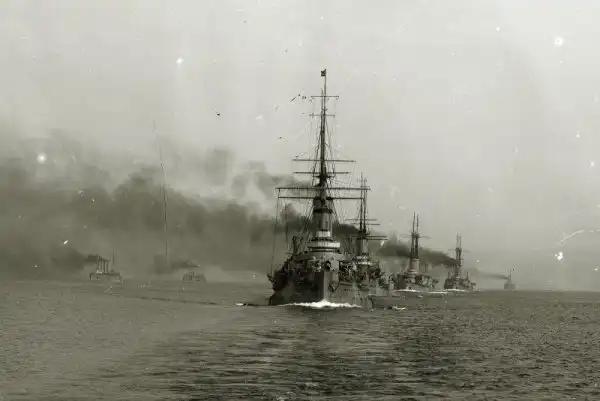 Эскадра кораблей Балтфлота на манёврах, 1900-е гг. На фото: линкоры