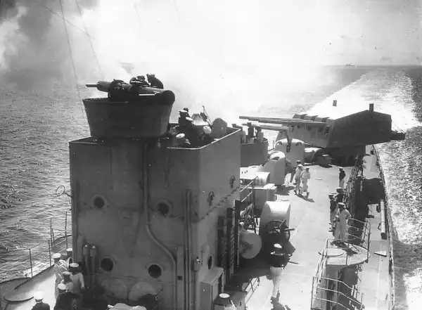 Легкий крейсер Кенигсберг во время учебных стрельб в 1936г.
