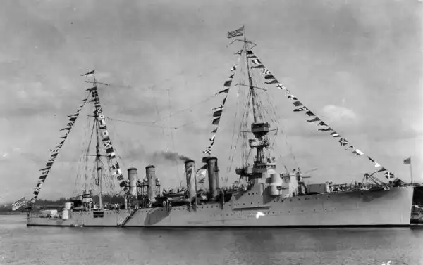 Крейсер Omaha (CL-4) в гавани, 8 декабря 1923 года