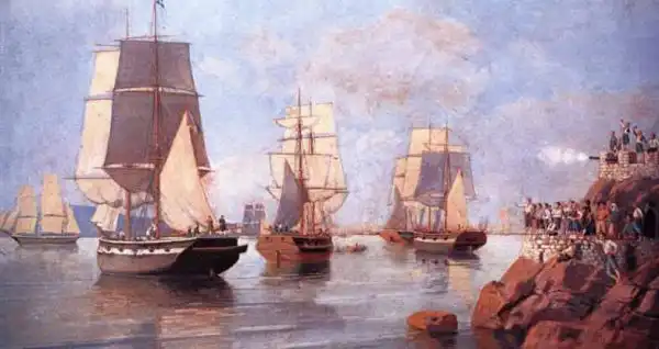 Жители острова Идра встречают корабли адмирала Миаулиса