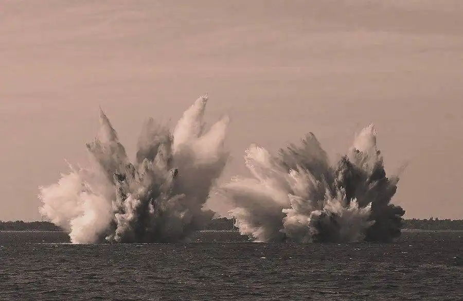 На рейдах и в узкостях, где из-за стесненности акватории нельзя было применить тралы, для уничтожения мин проводилось глубинное бомбометание. В гавани Гданьска, например, было уничтожено 8 мин, в порту Гдыня - 9 мин. Кроме того, глубинное бомбометание было применено при уничтожении противолодочных сетей на Нарген-Порккала-Уддской позиции. Здесь было подорвано 76,6 кабельтова немецких противолодочных сетей.