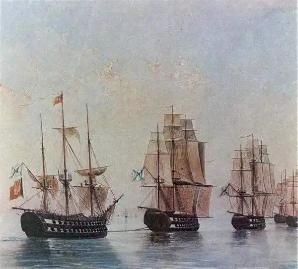 Другой сомнительного вкуса изюминкой инструкции являлось то, что в ней не указывалась ни дата, ни даже период, когда русской эскадре необходимо подойти к Дарданеллам. Сенявин больше не стал дожидаться никаких инструкций и предписаний, которые могли только усугубить ситуацию, а приняв запасы, вышел в море в начале февраля 1807 г. по направлению к Стамбулу. Война к этому времени была уже объявлена. Ресурсы собственно Ионических островов были довольно ограниченными, чтобы в полном объеме снабжать всем необходимым как русские корабли, так и находившиеся тут войска. Поскольку Сенявин фактически оказался отрезанным от родины, а большая часть побережья Средиземного моря находилась во власти противника, вопрос о логистике был решен прямым и бескомпромиссным способом. Почти каждое торговое судно, встречаемое русскими, принадлежало врагу и, естественно, объявлялось призом. По приказу Сенявина, все захваченные корабли и контрабандные грузы нейтральных «купцов» поступали в продажу. Три восьмых от полученной суммы распределялись между офицерами и матросами корабля, взявшего приз. Остальные пять восьмых – между остальными кораблями эскадры. Система была такова, что весь личный состав получал в той или иной мере денежное вознаграждение. Так были решены проблемы не только выплат жалованья офицерам и матросам, но и закупки провианта и других необходимых припасов. Враждебные воды Средиземноморья были весьма урожайными на трофеи. Так, фрегат «Венус», оперировавший в районе Венеции и Триеста, взял призов на сумму, перевалившую за 100 тыс. рублей.