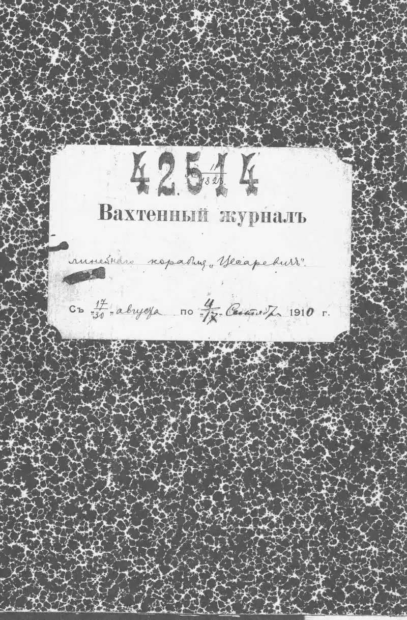 Обложка вахтенного журнала броненосца «Цесаревич».