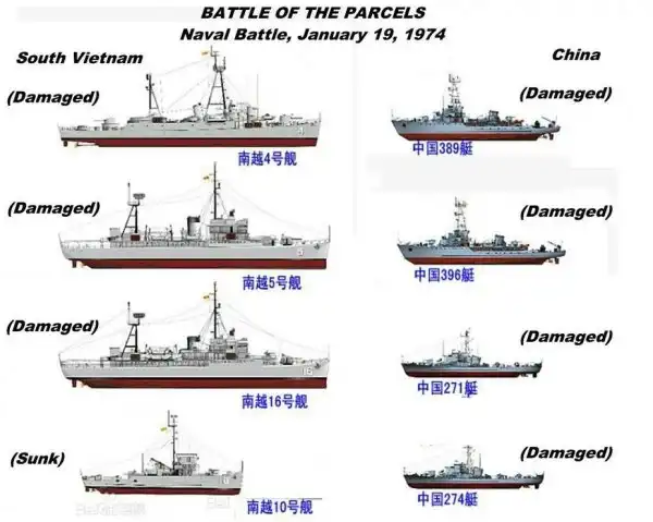 Тяжело повреждён был «Ли Тхыонг Киет», а на «Нат Тяо» вышел из строя последний работающий двигатель. Тем не менее, поначалу южновьетнамцы брали верх. Китайский корабль № 274 потерял ход из-за тяжёлых повреждений, № 396 вынужден был выбросится на мель, чтобы не затонуть. № 271 загорелся и, по мнению вьетнамцев, затонул, но китайцы утверждали, что он поставил дымовую завесу для выхода из боя.